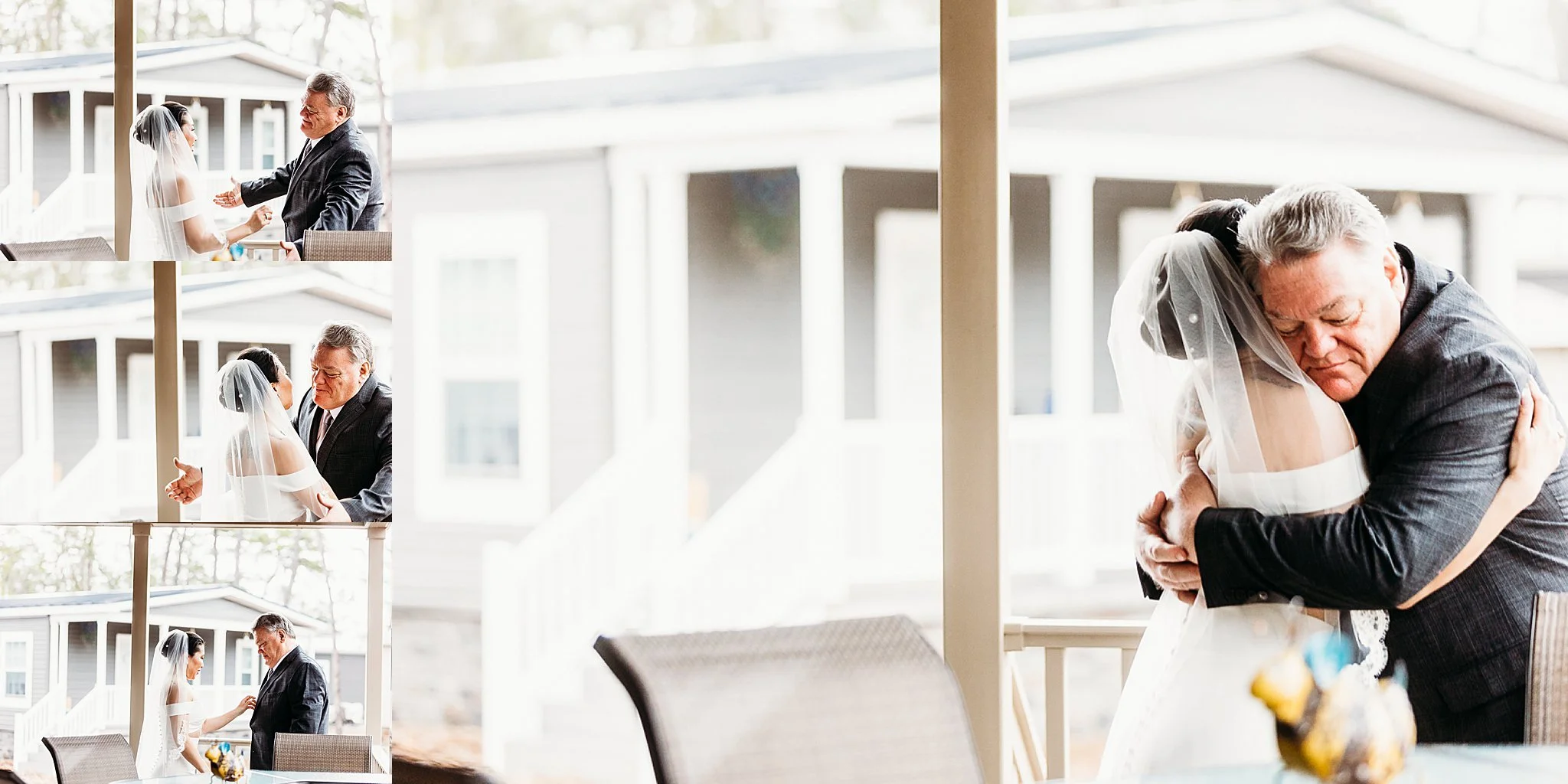 As Randi was getting ready, the rain started to let up and the sky looked like it might actually clear up as well. We did a beautiful first look with her and her dad out on the covered porch, once she was all ready. And, then it was time for the ceremony to begin.
